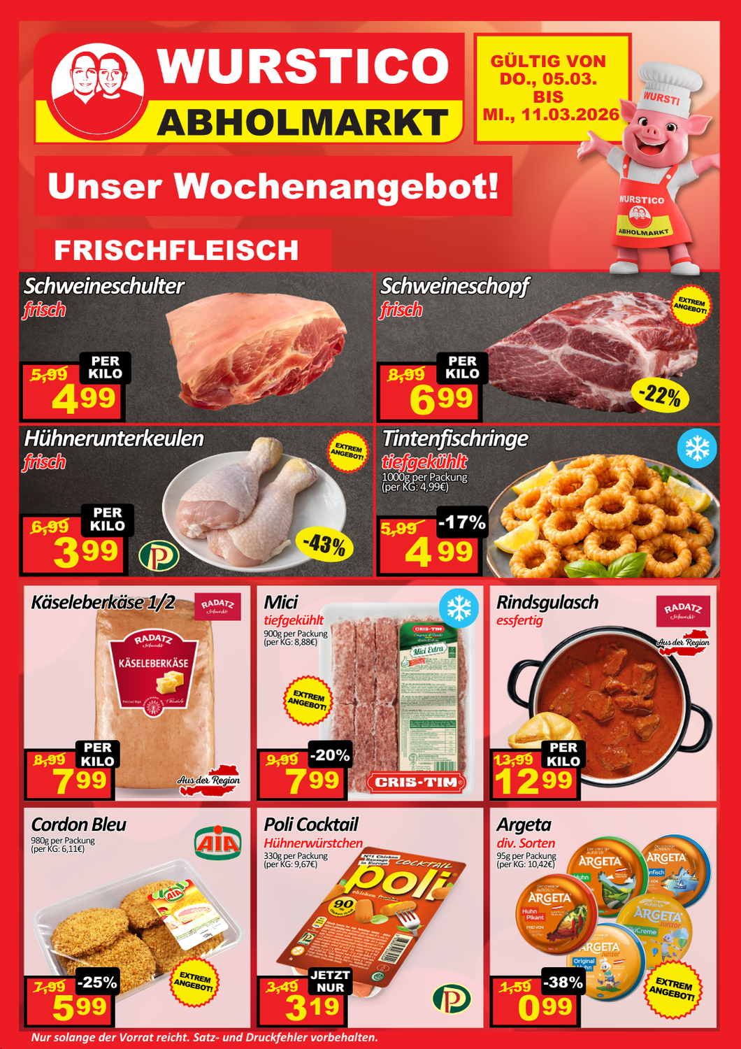Verpassen Sie keine Schnäppchen – besuchen Sie regelmäßig die Wurstico